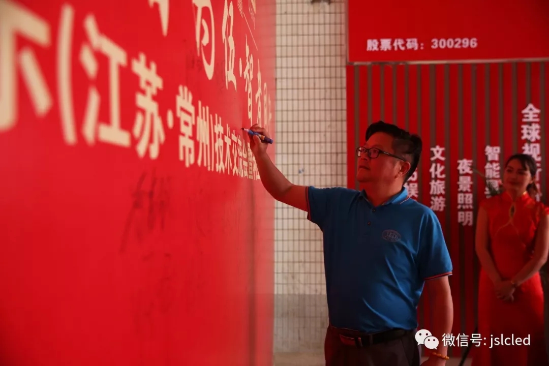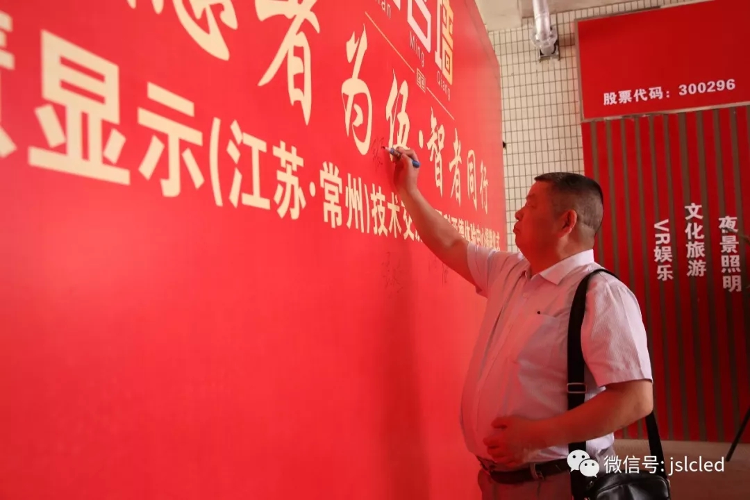 江蘇亮彩電子有限公司總經理章九余先生、利亞德渠道中心副總經理吳斌先生、今創集團(股票代碼603680)董事局主席俞金坤和常州市工商聯副主席韓紅衛女士共同上臺進行揭牌和授牌儀式。